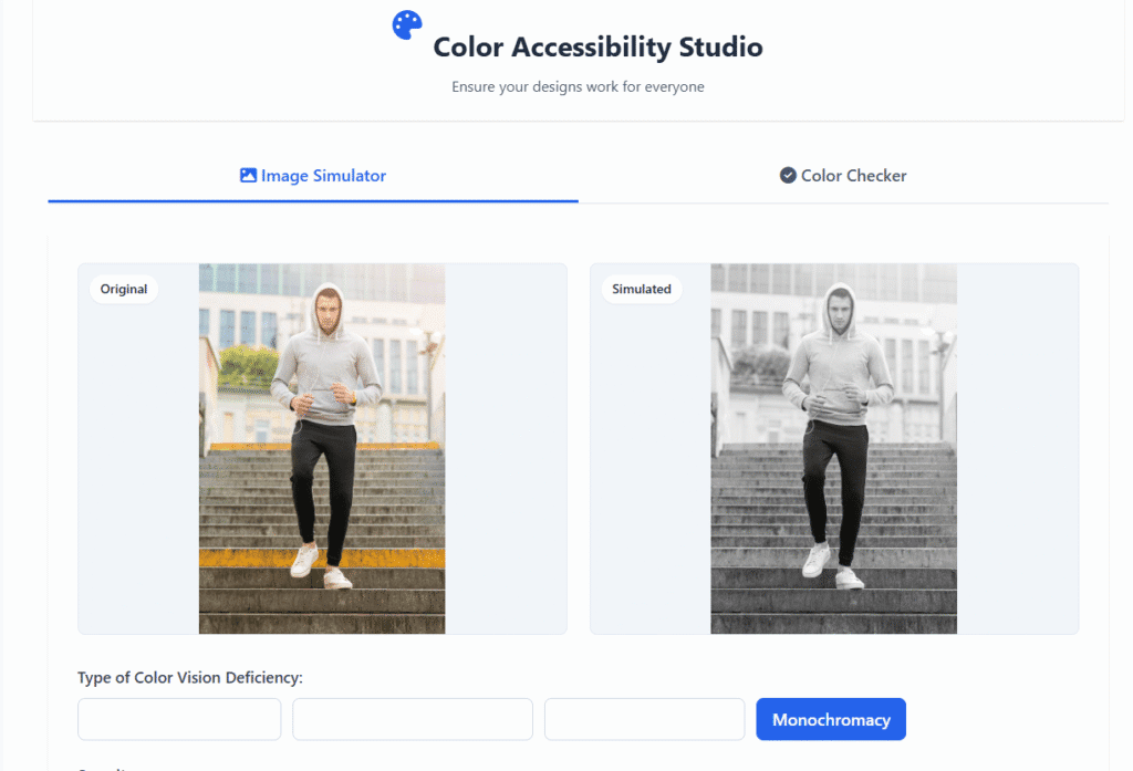 - Open the tool: Go to the Color Blindness Simulator (opens in new tab).